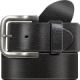Классический ремень черного цвета для брюк с открытой металлической пряжкой.
