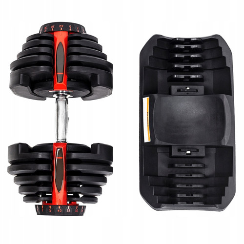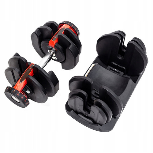 Многофункциональная гантель для поддержания формы в домашних условиях. Максимальный вес — 24 кг. 15 уровней регулировки. Подставка для инвентаря в комплекте.